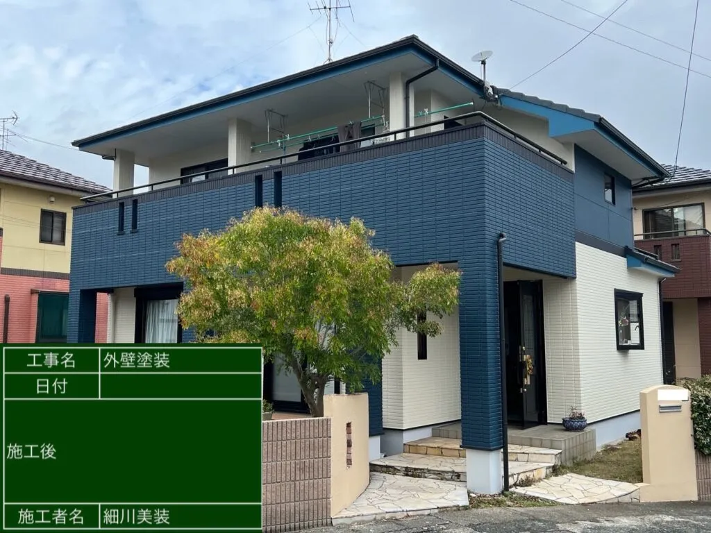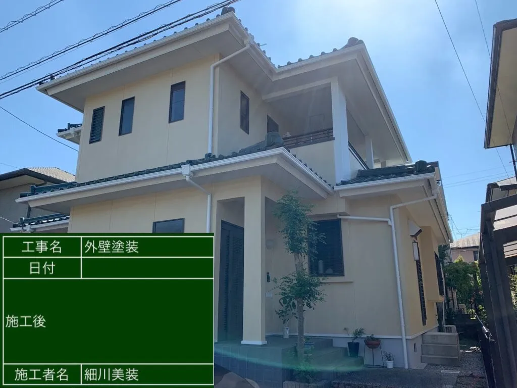 外壁塗装の塗り替えのご依頼でしたが、ご予算内で塗り替えたいとのことで、費用を抑えながらお客様のご要望にぴったりの施工をご提案いたしました。色味を落ち着いたツートーンカラーに変更して施工いたしましたが、熟練の職人による施工の仕上がりに大変満足していただけた様子でした。細川美装は自社施工の地域密着型サービスをご提供しているため、適正価格で高品質な仕上がりの施工をご提供しております。「なるべく費用を抑えて工事してもらいたい」「適正価格できれいな仕上がりにしてほしい」という方は、ぜひ細川美装にご相談ください。